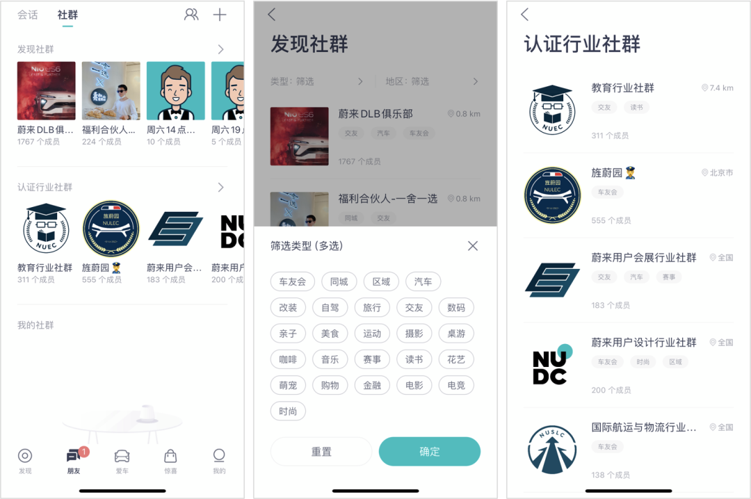 在蔚來的 App 里有基于愛好、職業(yè)、城市、身份多種標(biāo)簽的社群,也有認(rèn)證的行業(yè)社群,用戶可以加入任何你想要的圈子。這相當(dāng)于蔚來在自己的官方私域(App)里做了一個社交鏈接的平臺,大家可以找到“志同道合”的車友,一是可以增加用戶的 App 使用頻率,二是增強社區(qū)社交文化的屬性。并非每個汽車品牌都會像蔚來一樣在 App 里自建社群。一位特斯拉的車主@Hans 告訴運營社,特斯拉雖然也有自己的App,但沒有社群組織。微信社群都是車主自發(fā)組織,形成民間車友會,甚至有車主靠著組織服務(wù)特斯拉車主,做起了生意。民間社群是零散的、資源對接并非完整,而官方搭建的平臺會讓社交活動有發(fā)展的土壤,能夠一直延續(xù)。事實上,蔚來車主的“社交牛逼癥”,就是跟整個社區(qū)所營造的氛圍息息相關(guān)。3)深度參與感,與用戶共創(chuàng)內(nèi)容
