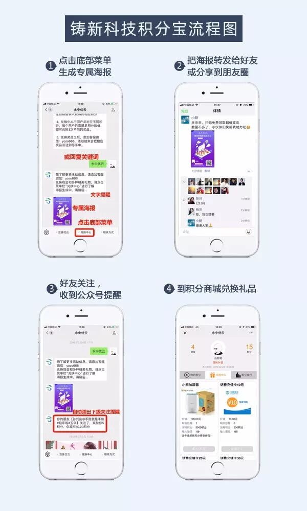 積分寶同樣是一款公眾號裂變海報工具,主要優(yōu)勢在于它是二級裂變,以積分的形式來統(tǒng)計上下級關(guān)系,系統(tǒng)自帶積分商城,粉絲可以根據(jù)情況自主進行禮品兌換,非常靈活。