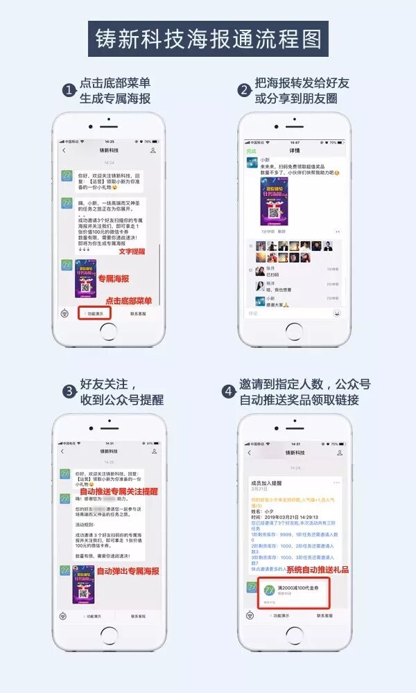 比如邀請3個好友通過專屬海報關(guān)注,可獲得獎品A;邀請10個好友通過專屬海報關(guān)注,可獲得獎品B......以此類推。如果你們的活動獎品金額比較高,一定要試下階梯獎品功能。