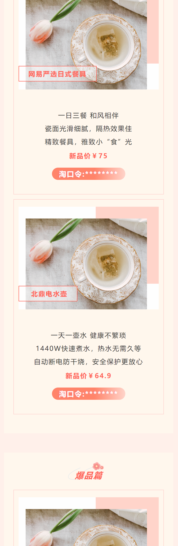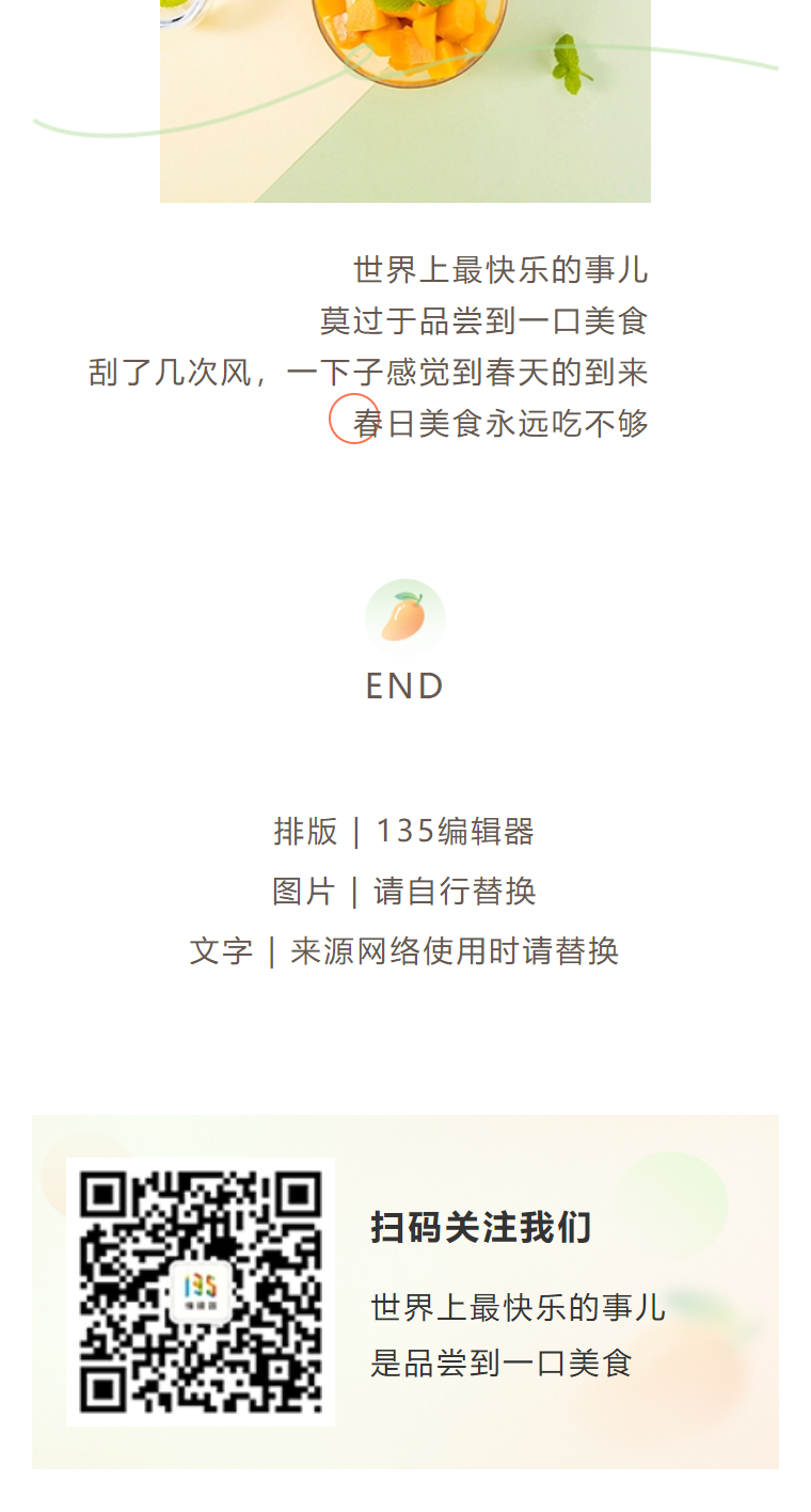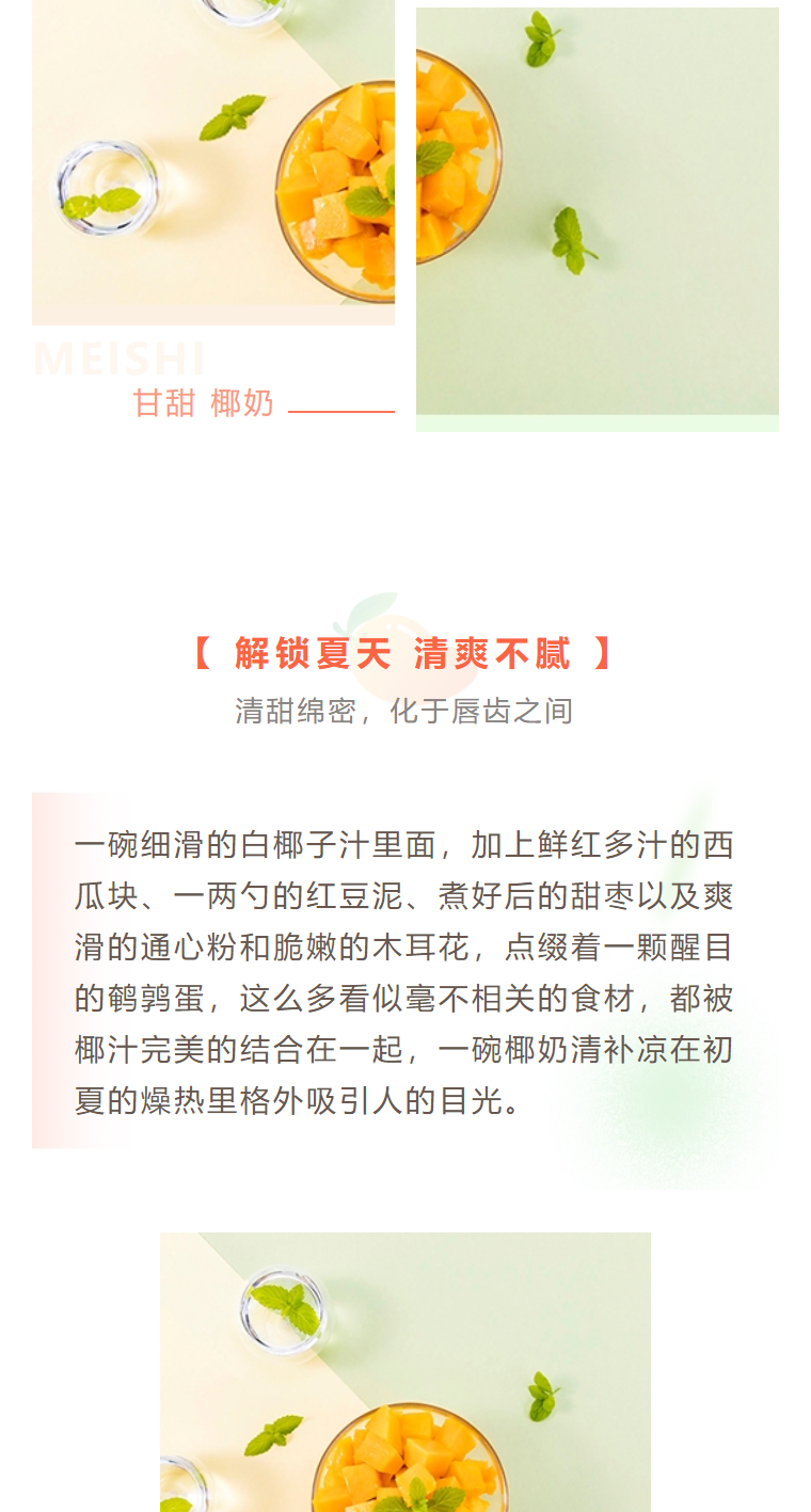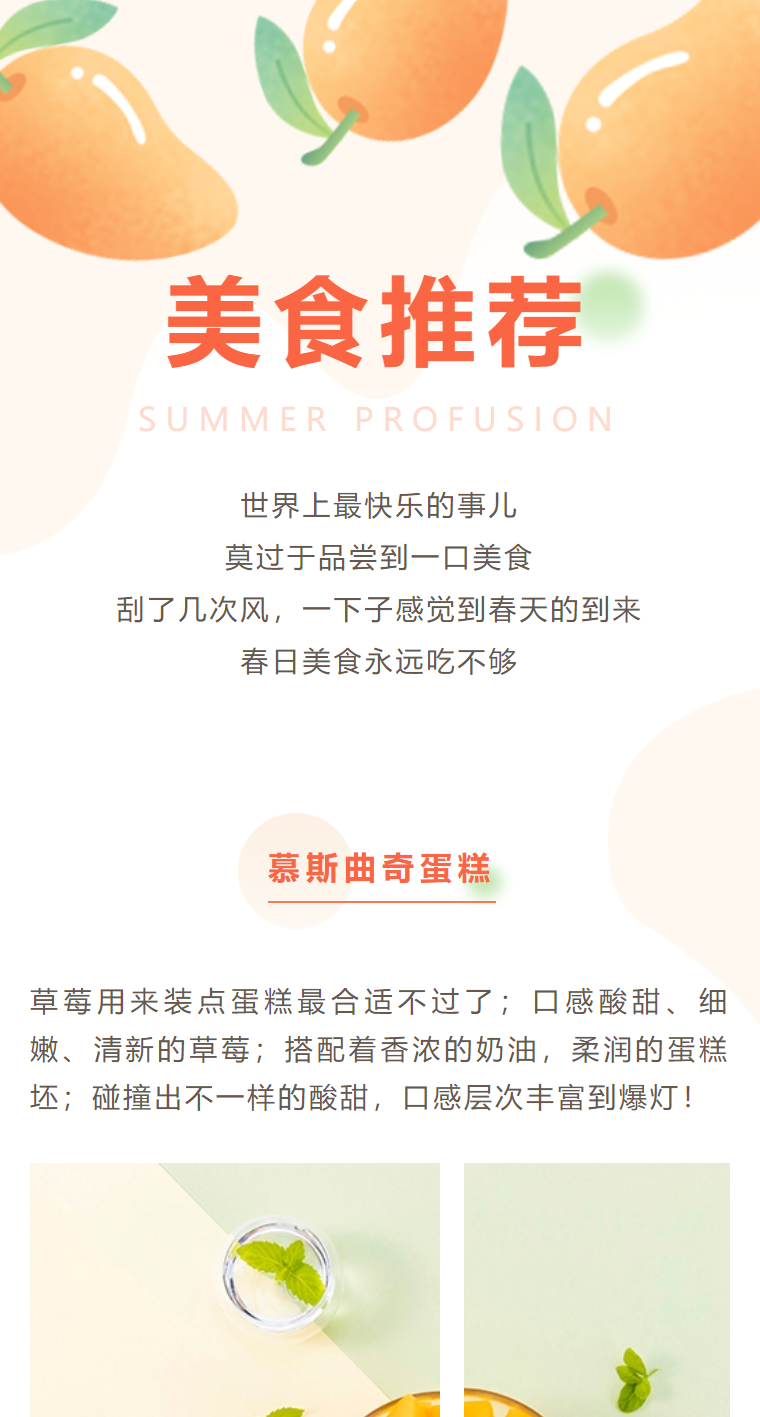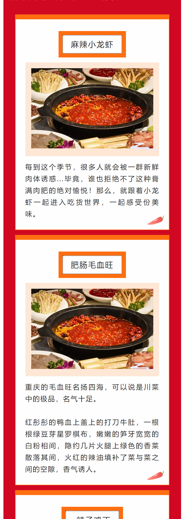 樣式:使用列表清單式結(jié)構(gòu),介紹多個(gè)美食。排版模塊化,標(biāo)題樣式可加入當(dāng)日介紹的美食元素。
