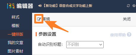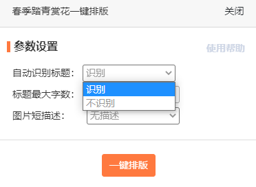 點(diǎn)擊『使用』按鈕,進(jìn)入?yún)?shù)設(shè)置界面。在這里中,你可以自定義是否自動(dòng)識(shí)別標(biāo)題,識(shí)別標(biāo)題的最大字?jǐn)?shù),以及圖片前后是否有短描述等排版規(guī)則。