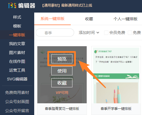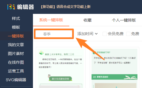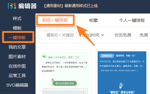 點(diǎn)擊135編輯器左側(cè)的『一鍵排版』-『系統(tǒng)一鍵排版』,這里為大家準(zhǔn)備了多種不同風(fēng)格、行業(yè)、主題、節(jié)氣的一鍵排版模板。