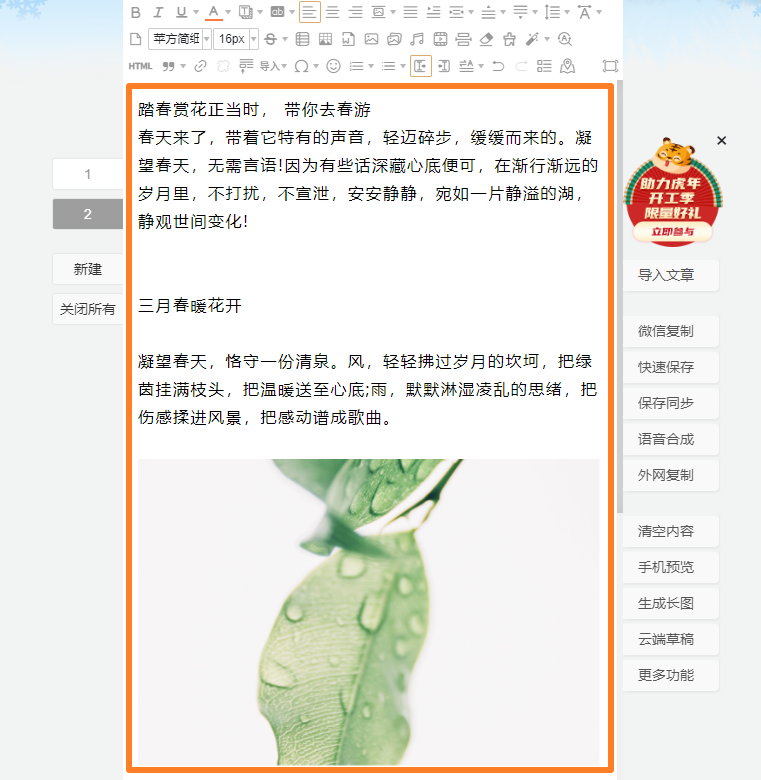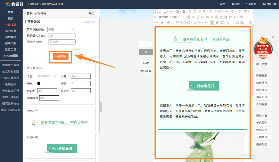 135編輯器的一鍵排版功能可以幫助大家在短時(shí)間內(nèi)快速完成微信文章的排版,最大程度地縮短排版時(shí)間,讓排版的步驟更簡單。