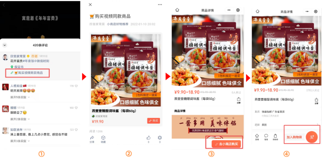 去年12月,視頻號灰度測試購物車功能,博主可以在發(fā)布的視頻下方直接掛鏈購物車商品,商品來源包括視頻號主開的微信小商店、被商家添加為小商店成員、【帶貨中心】的【選品】功能。這項功能的更新對用戶來說,直接點擊鏈接就可以抵達購物車商品詳情頁,大大縮短用戶的購買路徑,能夠提高用戶的購買意愿。對創(chuàng)作者來說,提供了更加便捷的帶貨渠道,對提高創(chuàng)作者收入也有益處。那么目前該功能帶貨效果如何?如何有效的利用該功能呢?
