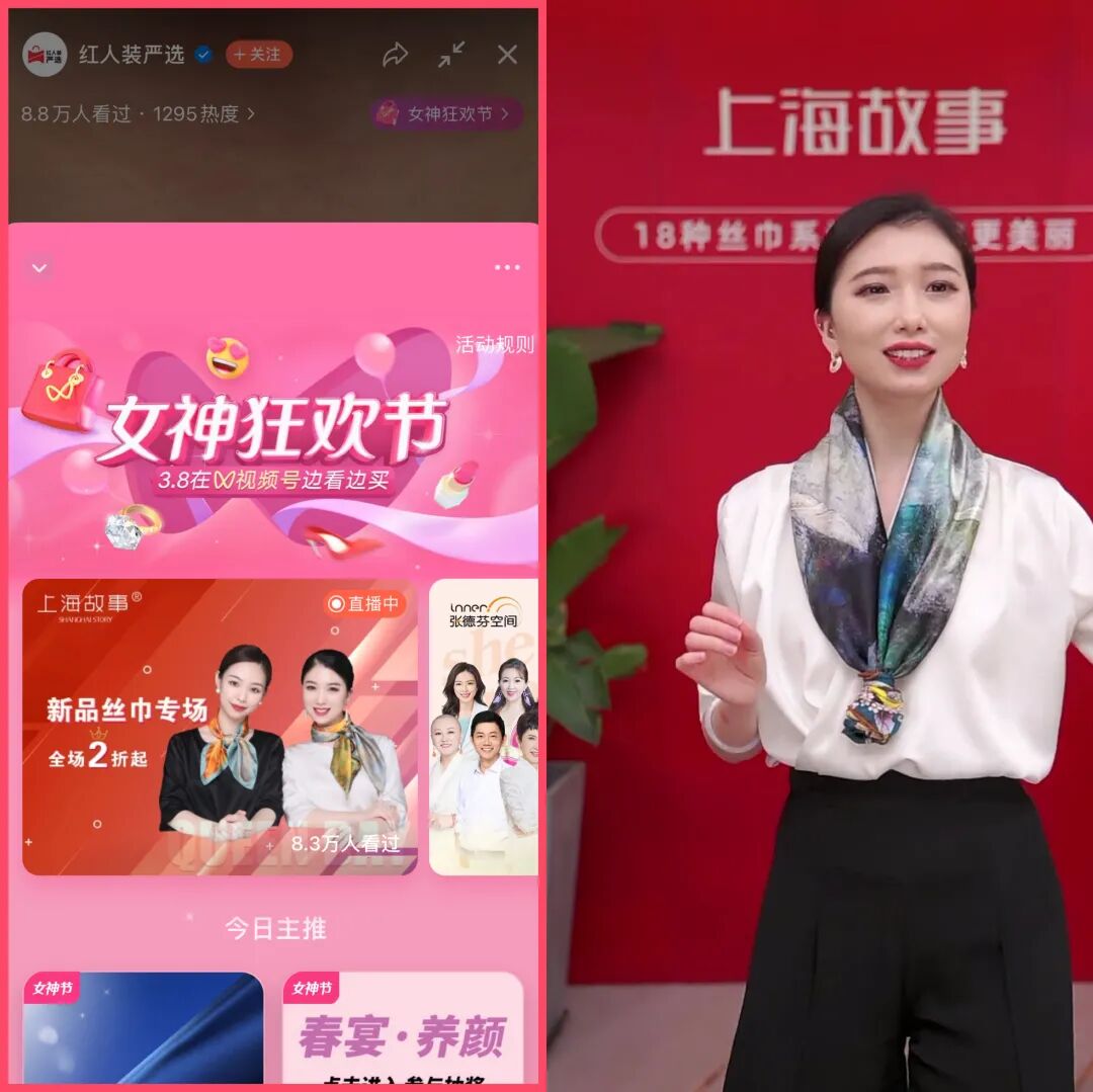 在視頻號“3·8女神節(jié)”官方發(fā)布的榜單上,我們可以看到絲綢真絲商家占據(jù)了半壁江山。