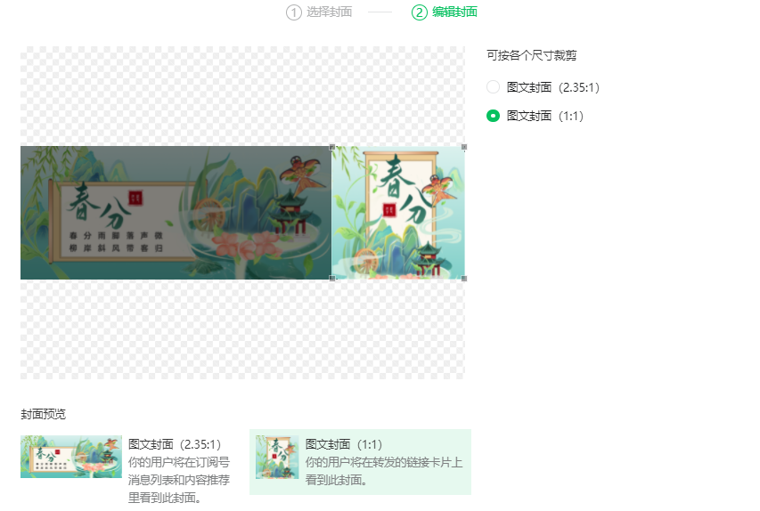 接下來(lái)我們?cè)谖⑿殴娖脚_(tái)里上傳封面圖,然后按照要求選擇不同的圖片就可以啦!