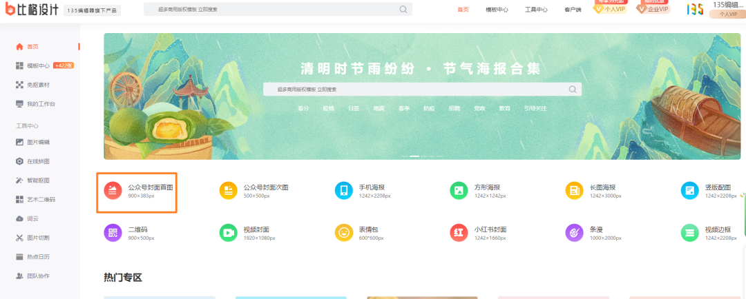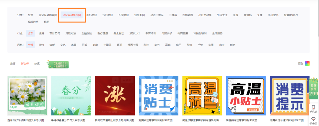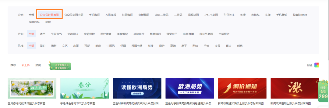 進(jìn)入官網(wǎng)后選擇公眾號(hào)封面首圖,選擇自己喜歡的類型制作一張封面首圖