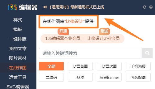 從135編輯器左側(cè)進(jìn)入比格會(huì)員或是打開電腦瀏覽器,在地址欄輸入比格設(shè)計(jì)官網(wǎng)地址https://bigesj.com/