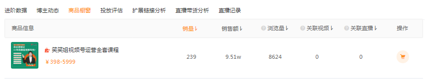 目前,賬號(hào)變現(xiàn)最多的是招收學(xué)員,作為情感頭部博主,許多想創(chuàng)業(yè)學(xué)習(xí)的人向笑笑“取經(jīng)”,學(xué)習(xí)短視頻運(yùn)營之道,在商品櫥窗中,也能看到笑笑悟短視頻運(yùn)營課程的產(chǎn)品,根據(jù)【友望數(shù)據(jù)】-【商品櫥窗】可以發(fā)現(xiàn)該課程在視頻號(hào)的預(yù)估銷售額達(dá)到了9.51萬。