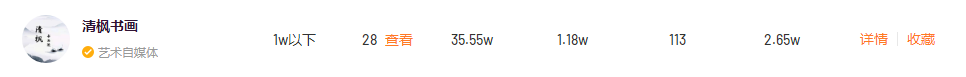 通過友望數(shù)據(jù),我們發(fā)現(xiàn)近期不少藝術博主在視頻號直播,他們的賬號名稱通常有“書畫”“字畫”“藝術”“繪畫”等字,比如清楓書畫雙雅字畫子非魚手繪,讓用戶通過名字就可以了解該賬號大致的直播內容。△ 截圖來源:友望數(shù)據(jù)-直播帶貨榜