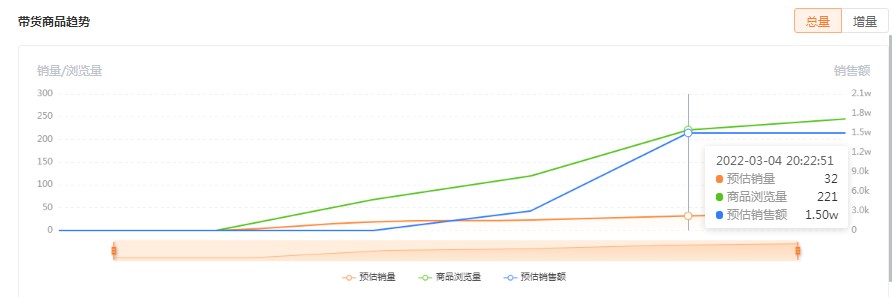 通過【商品分析】可以看到該場直播設(shè)置了2個1元秒殺商品,分別是空氣炸鍋以及破壁機,在19:38分商品上線后,觀看直播間的人數(shù)有所增加。