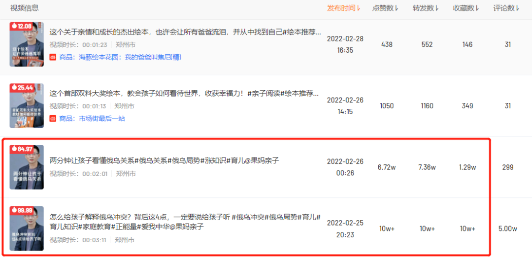 母嬰育兒博主芒果爸爸帶娃從教育的角度,為大家講述《怎么給孩子借勢烏俄沖突》,既有國家強大、戰(zhàn)爭殘酷等內(nèi)容,最后又能轉(zhuǎn)到好好學習的點上,把復雜的事件娓娓道來,通俗易懂,收獲了點贊、轉(zhuǎn)發(fā)、收藏均10W+。