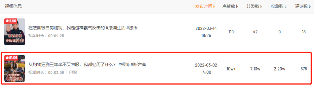 野生愛瑪是一位旅游博主,主要和大家分享她在路上的生活。近期的一條內(nèi)容《從購物狂到三年半不買衣服,我經(jīng)都歷了什么?》,為大家講述了她從衣服包包鞋子各種買買買的精致時尚的生活,到三年半不買衣服的極簡生活的轉(zhuǎn)變,從都市摩登到投入大自然懷抱,繁華落盡、返璞歸真。相比愛瑪其他點贊不過千的視頻內(nèi)容,這條生活方式展現(xiàn)的內(nèi)容更能引發(fā)用戶關(guān)注。