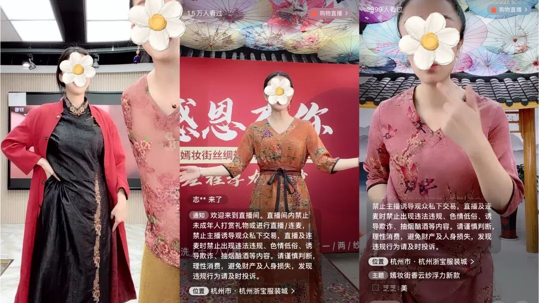 △ 截圖來源:友望數(shù)據(jù)-店鋪詳情-店鋪商品也是基于視頻號的社交關(guān)系,絲綢真絲這類高客單價的商品,在半數(shù)人的場景中,給人的信任感更強(qiáng)。且視頻號的消費(fèi)用戶很多是淘抖快沒有觸達(dá)的,在左一聲“姐姐”、右一聲“我們家姐姐”親切溫柔的呼喚下,這種信任感會加倍,讓用戶覺得在關(guān)顧親朋好友的店鋪,更能提高轉(zhuǎn)化。當(dāng)然也少不了精細(xì)化的運(yùn)營,例如,不同賬號的直播間,直播場景的搭建也不同。明亮大氣的T臺場景,給人感覺更時尚年輕,也更高端,直播間商品的平均價格也相對較高。樸素典雅的中國風(fēng),直播間面向的用戶年齡層就相對高一些。選品不同、直播間場景不同,面向的受眾也會有所區(qū)別。