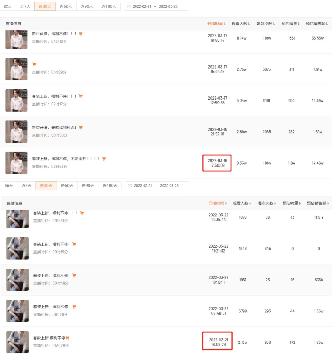 △ 截圖來源:友望數(shù)據(jù)-博主詳情-直播記錄