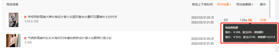 這幾個直播間都很注重用戶互動:新來的姐妹打個“新”字、想要的姐妹打個“1”、達(dá)到1000個“1”我就給你們來個王炸價格、已拍的姐妹回復(fù)“已拍”、需要加急的姐妹打“加急”……她們沒有引導(dǎo)用戶加微信、賬號也沒留微信添加方式,可見通過直播間的高頻互動,一定程度上可以撬動公域流量。我們從【直播記錄】-【直播概況】-【商品分析】查看發(fā)現(xiàn),商品都會從398改價到59.9,而從上文的評論中我們也能發(fā)現(xiàn)有很多“59”的評論。