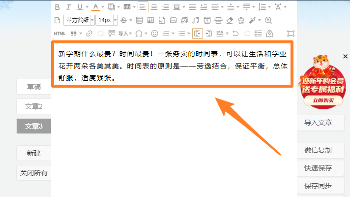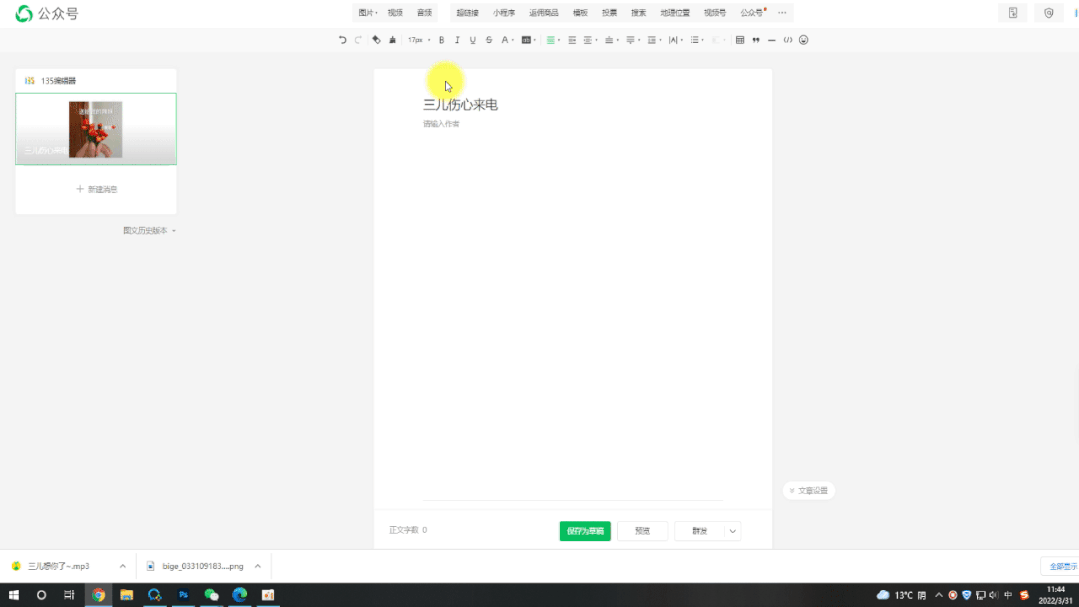 1、打開135編輯器,在編輯區(qū)內輸入或者粘貼需要合成語音的文本內容。