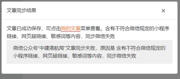 ??該圖所示:添加了不符合公眾號(hào)能接受的音頻或超鏈接,或音頻數(shù)量超過(guò)公眾號(hào)限制的十條數(shù)量
