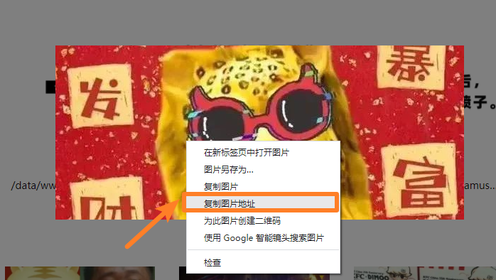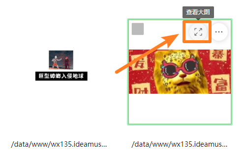2、圖片上傳成功后,在素材庫(kù)點(diǎn)擊圖片右上角「查看大圖」按鈕,在圖片上點(diǎn)擊鼠標(biāo)右鍵,選擇復(fù)制圖片地址。