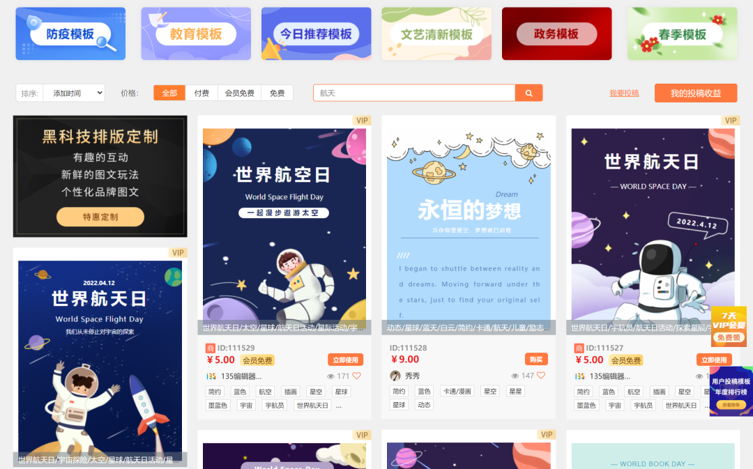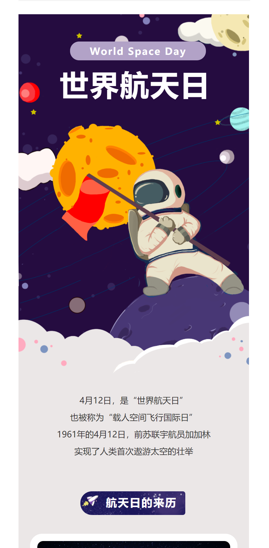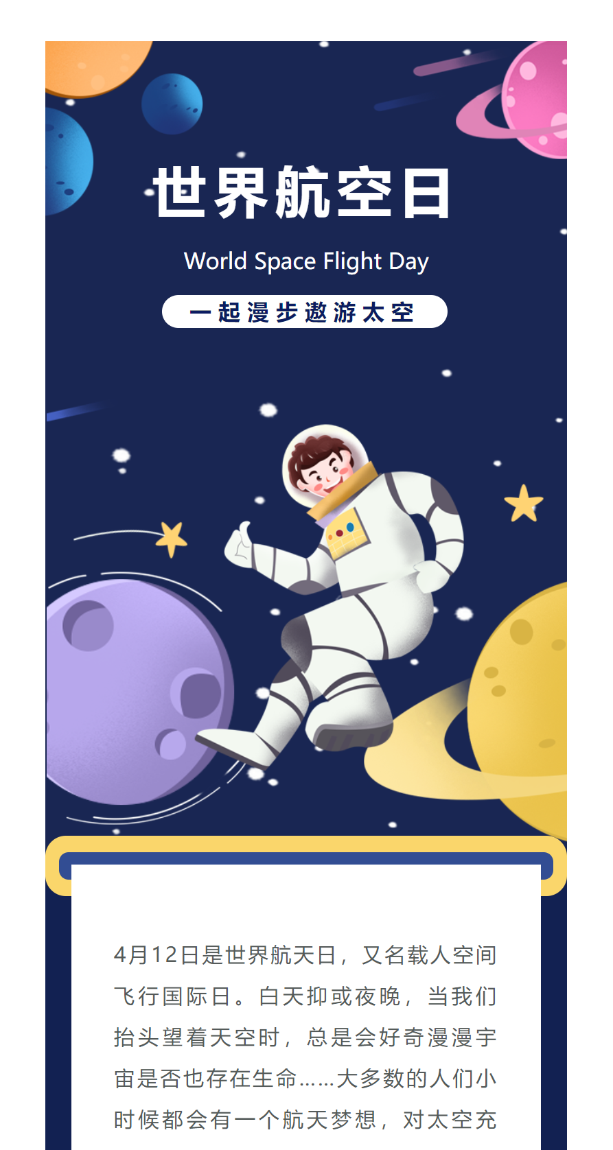 世界航天紀念日公眾號推文模版上新(航天太空旅行宣傳文案素材)