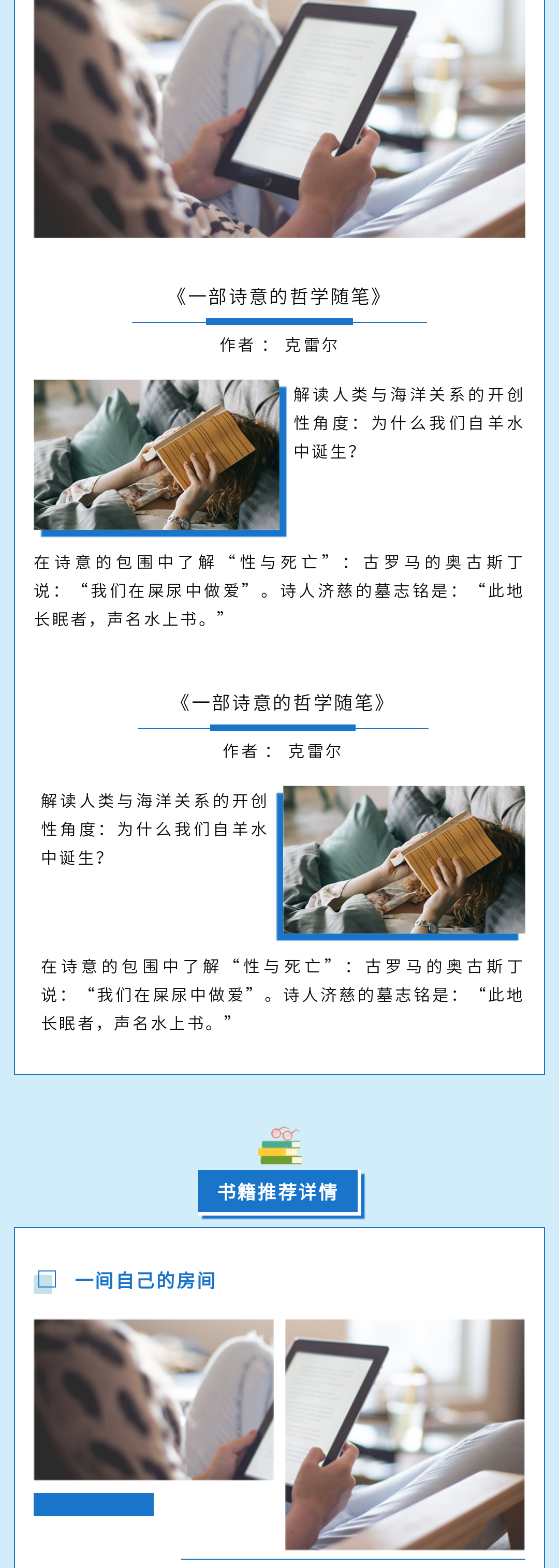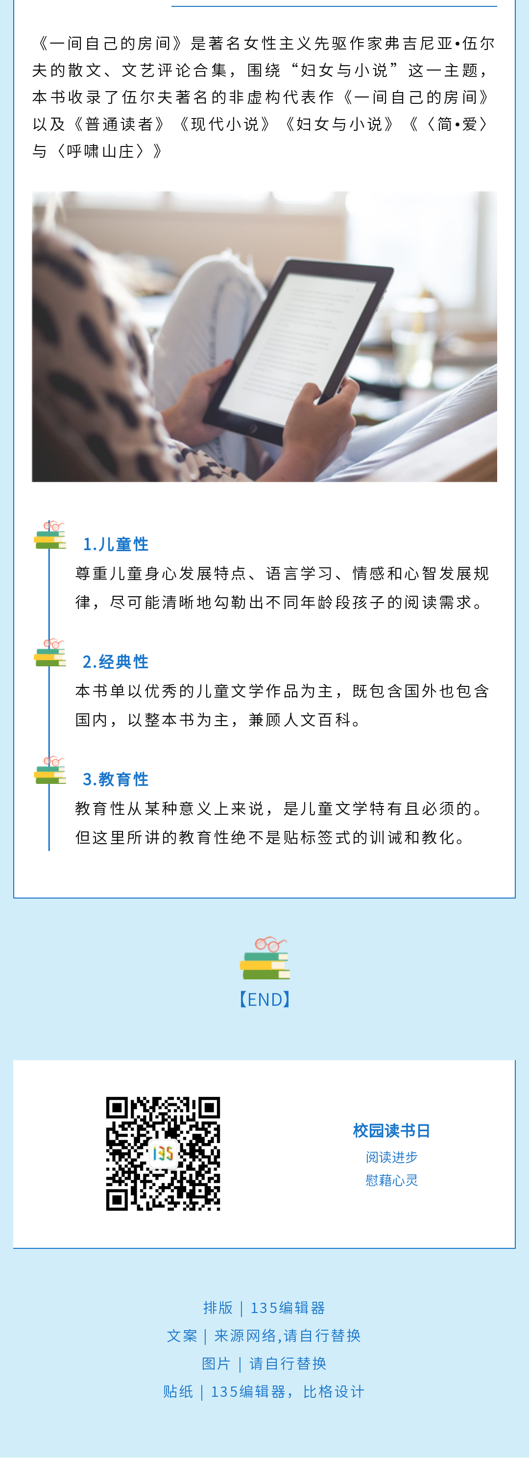 風(fēng)格:藍(lán)色、插畫、讀書