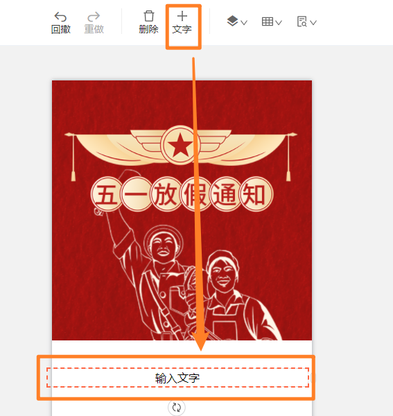 ?點擊上方的“+號”【添加文字】按鈕,畫布中就會出現(xiàn)一個文本框,輸入文字。