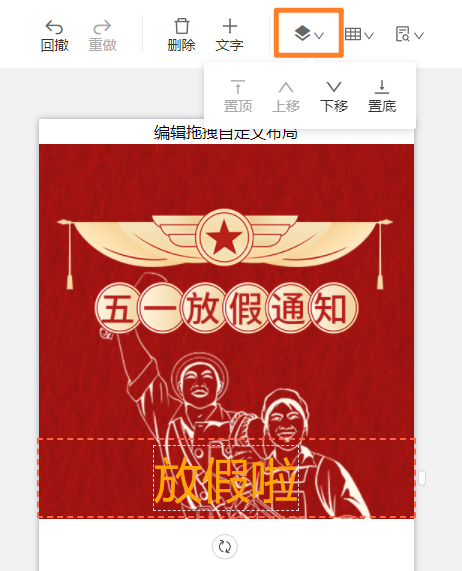?選中文本框,點擊圖層按鈕,可以改變圖層疊放順序,將文本上移或下移。