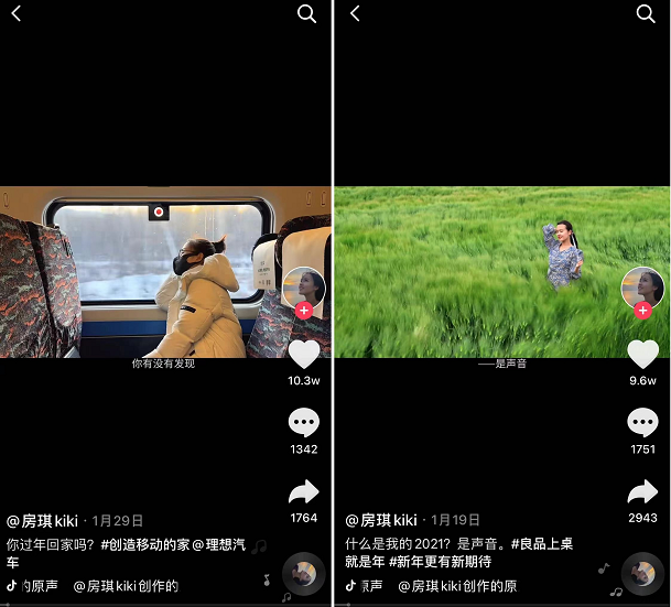 在@房琪kiki的視頻當(dāng)中,就有“過(guò)年你回家嗎?、“花4萬(wàn)多塊錢為老公清空購(gòu)物車,是一種怎樣的體驗(yàn)?” 等等。