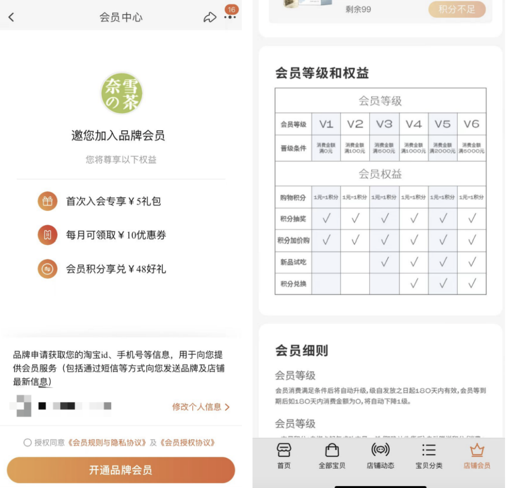 目前只有在淘寶店內(nèi)和小程序中有會(huì)員的入口。