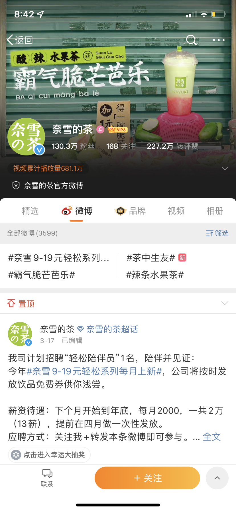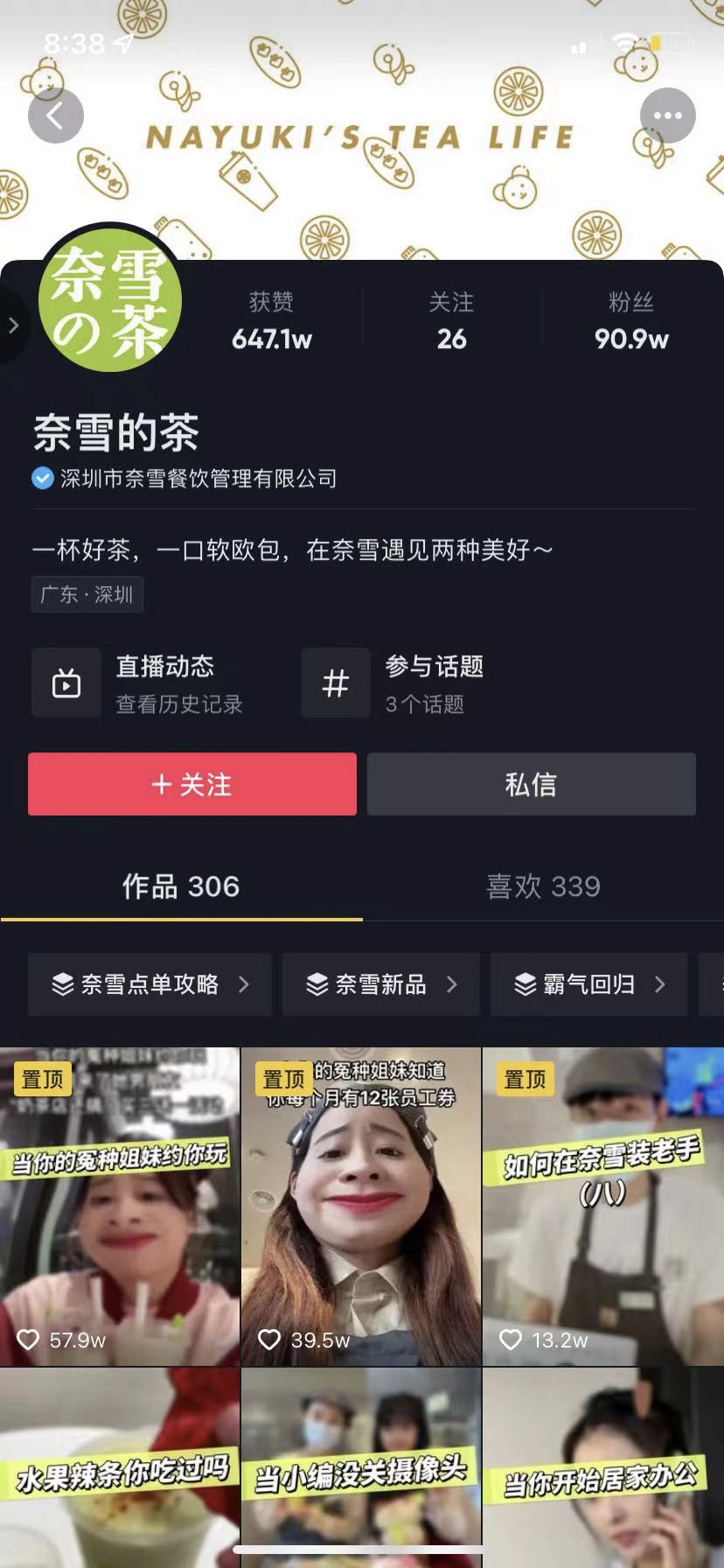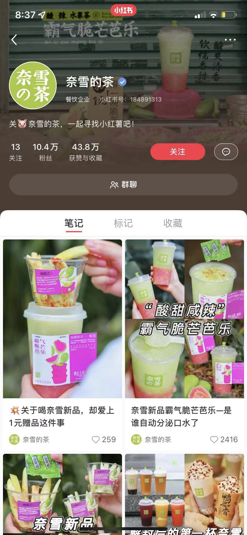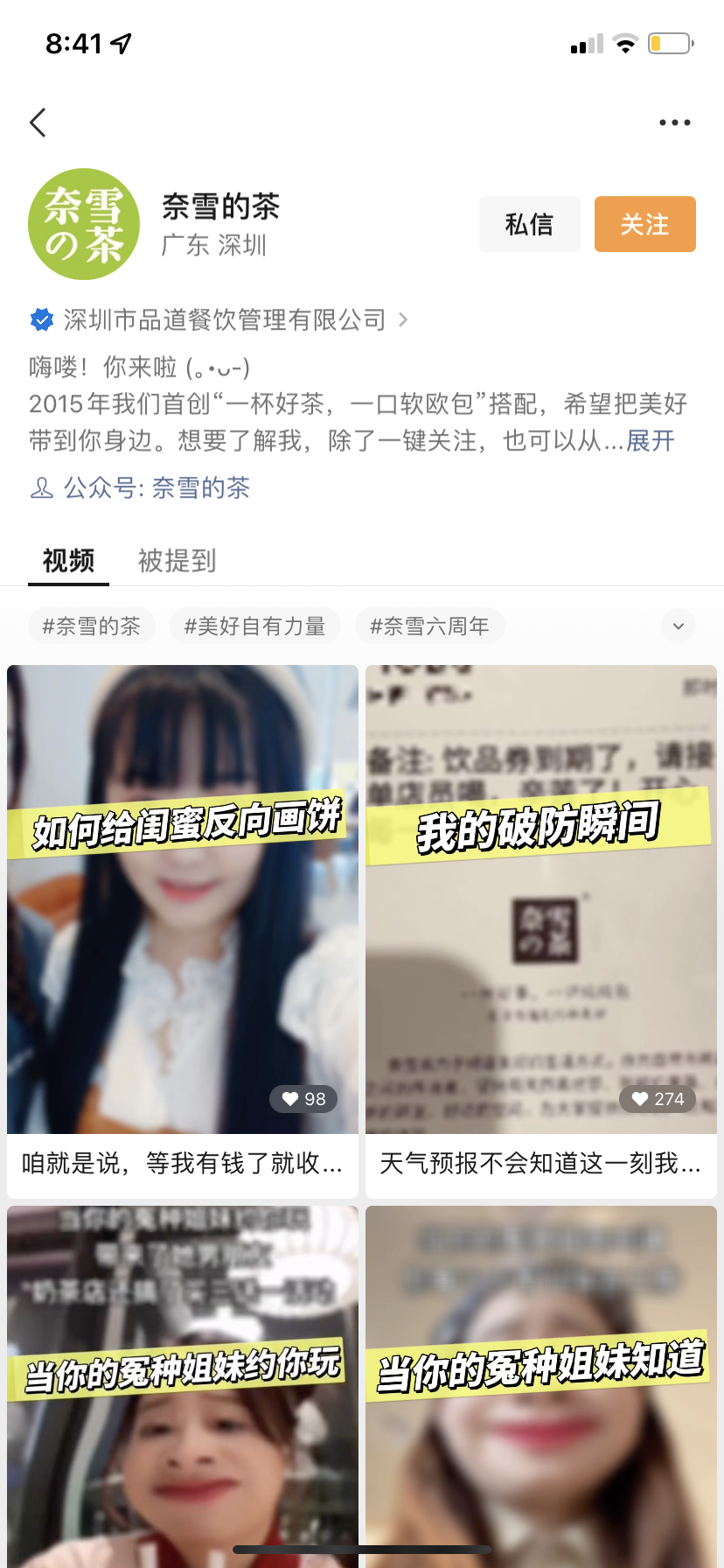 公眾號(hào):公眾號(hào)「奈雪的茶」粉絲接近800萬,在菜單欄內(nèi)有私域社群的引流入口,具體路徑: