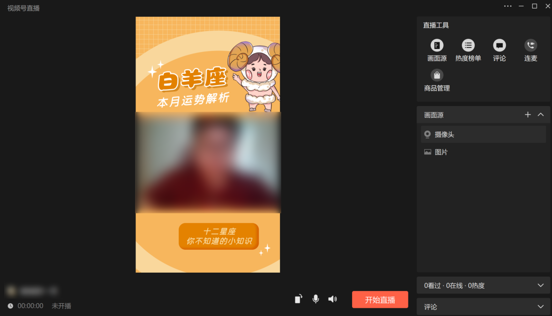 在PC端打開視頻號直播。畫面源中,增加一個【多媒體】,將這張圖插入進去。調(diào)整畫面源順序,攝像頭為最上層的。