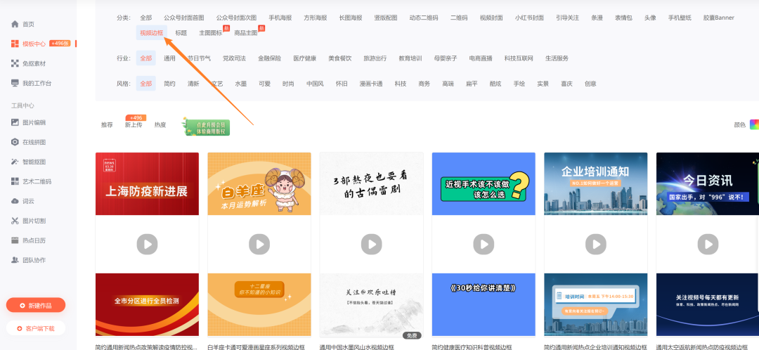 要想制作一張好看的封面圖,當(dāng)然要用比格設(shè)計!我們在官網(wǎng)找到【視頻封面】這個選項