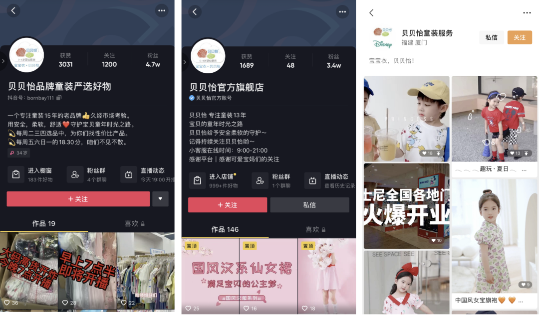 貝貝怡目前在抖音有兩個賬號,主要視頻內(nèi)容以產(chǎn)品福利、產(chǎn)品介紹為主,幾乎每日都會開啟福利直播;還有專門的視頻號,主要視頻內(nèi)容以門店宣傳、產(chǎn)品介紹為主。