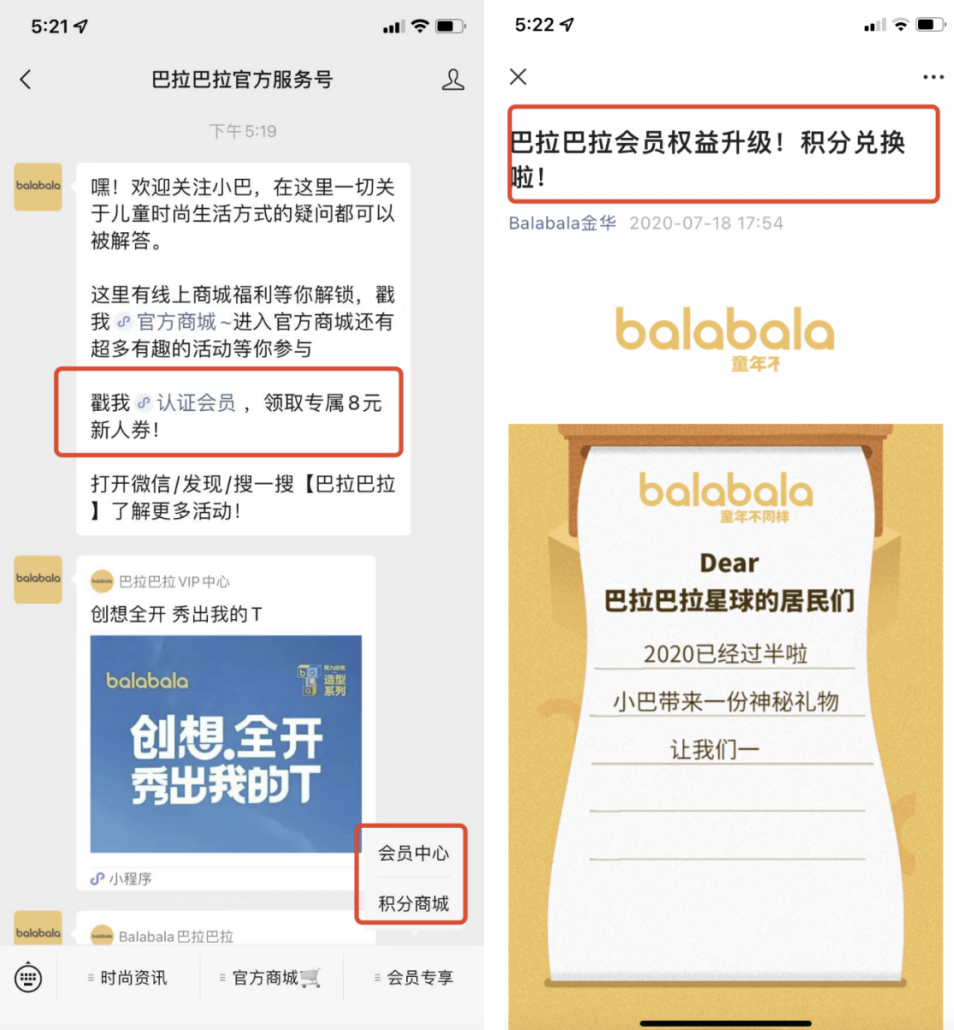 在關(guān)注巴拉巴拉公眾號后,自動歡迎語內(nèi)有福利引導注冊會員,以及在相關(guān)的推文中也在引導注冊會員。