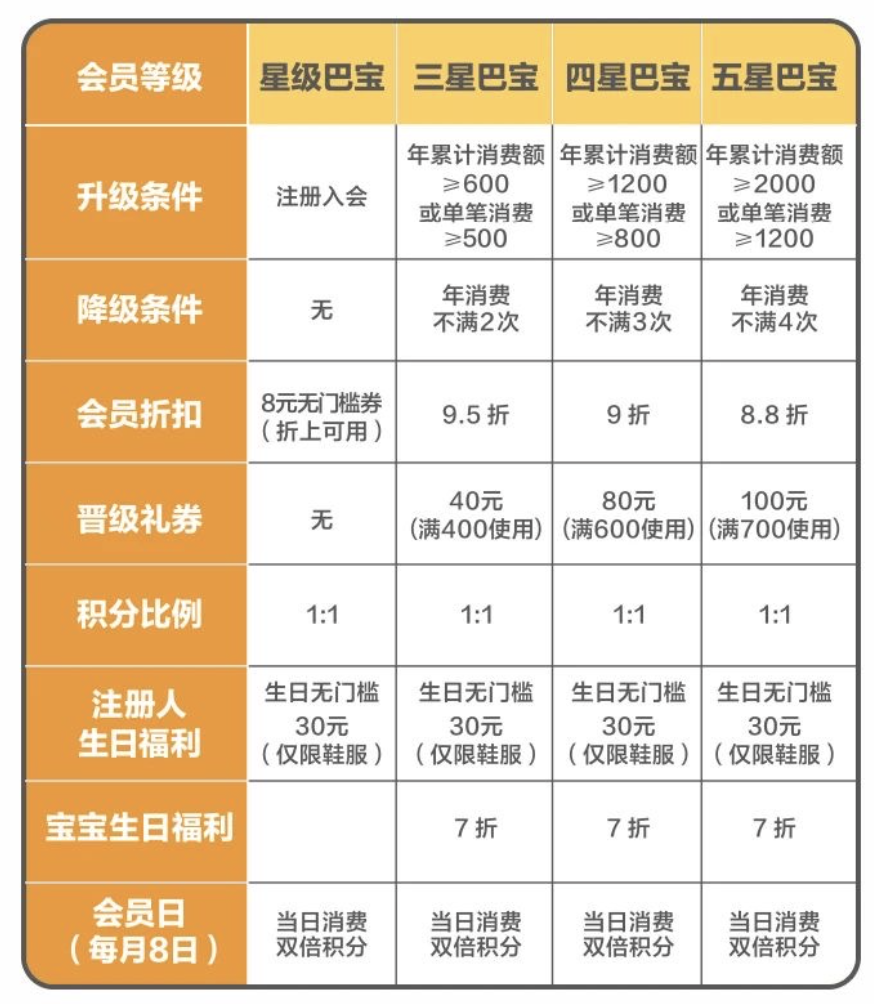 目前會員共分為4個等級,具體要求和福利如下圖: