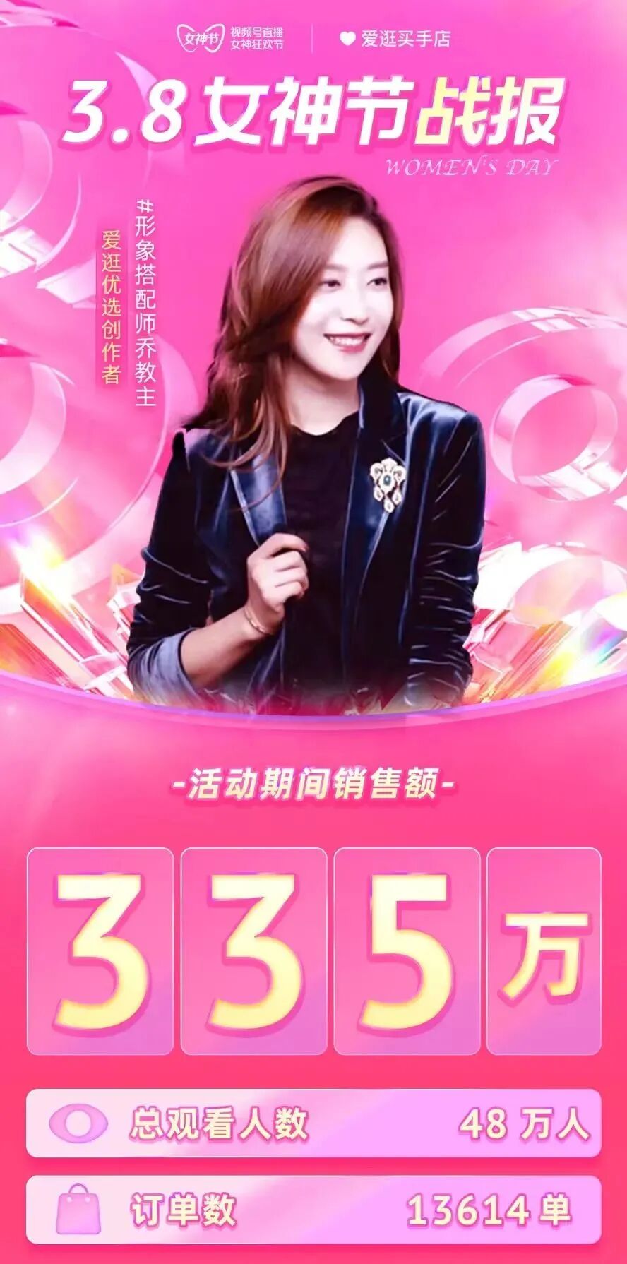 和視頻號(hào)中的很多主播一樣,喬教主也是從直播小白一步步進(jìn)階而來(lái)的。2020年前,喬教主一心專注于自己的線下業(yè)務(wù):給各大商超一線奢侈品牌做搭配教學(xué)、到各大知名企業(yè)做形象顧問(wèn)、開(kāi)設(shè)自己的培訓(xùn)班,生意好到單子甚至接不過(guò)來(lái)。雖然那會(huì)喬教主就有注意到一些同行開(kāi)始用直播的方式開(kāi)拓線上業(yè)務(wù),但從沒(méi)想過(guò)自己會(huì)成為一名帶貨主播。“我總覺(jué)得主播好像和我的身份不是很匹配、不是很高端,因?yàn)槲乙恢碧峁﹤€(gè)人化定制,很難想象自己要在鏡頭前去吆喝,讓我的客戶去直播間買(mǎi)東西?!?/span>但突如其來(lái)的疫情,讓她不得不面對(duì)現(xiàn)實(shí):線下業(yè)務(wù)被停滯,而線上直播正是紅火。“你不干,可能就吃不上飯了。我完全是被環(huán)境推動(dòng),被迫走上了直播之路?!?/span>2020年3月,喬教主去到深圳的一家直播電商基地接受專業(yè)主播的培訓(xùn),隨后開(kāi)始在其他直播平臺(tái)進(jìn)行線上授課,教大家穿搭知識(shí),同時(shí)搭配少量課程售賣(mài)。但彼時(shí)的直播間人數(shù)固定在30-40人左右。“那會(huì)一場(chǎng)也就賣(mài)幾千塊錢(qián),但是我發(fā)現(xiàn),自己慢慢找到了做主播的熱情和成就感,對(duì)直播行業(yè)的認(rèn)知也開(kāi)始逐步拓寬,打消了很多偏見(jiàn),所以就堅(jiān)持下來(lái)了?!?/span>2021年3月,喬教主從朋友那得知微信視頻號(hào)這個(gè)平臺(tái),當(dāng)時(shí)就覺(jué)得“打開(kāi)微信就能直播,這也太方便了!”而且微信的用戶體量更大、覆蓋更廣,加上抖音等平臺(tái)競(jìng)爭(zhēng)較為激烈,而視頻號(hào)才剛起步,發(fā)展空間很大。于是,3月29日便在視頻號(hào)形象搭配師喬教主進(jìn)行了第一場(chǎng)直播,晚上7點(diǎn)持續(xù)到10點(diǎn),3個(gè)小時(shí)成交額近4萬(wàn)元。“如果放到現(xiàn)在來(lái)看,這個(gè)數(shù)字可以說(shuō)微不足道,但是和之前在外部直播平臺(tái)比,我能明顯感覺(jué)到,老客戶們能更便捷地來(lái)到我的直播間了。”