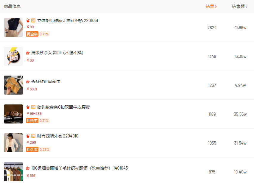 從【商品櫥窗】中我們可以看到,不少百元內(nèi)單品、配飾也很暢銷。