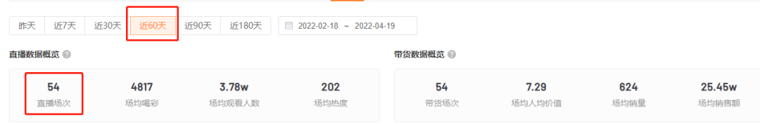 我們從友望數(shù)據(jù)的【直播記錄】可以看到,近60天,喬教主直播了54次,近乎是日播的狀態(tài)。圖片來(lái)源:友望數(shù)據(jù)-博主詳情-直播記錄