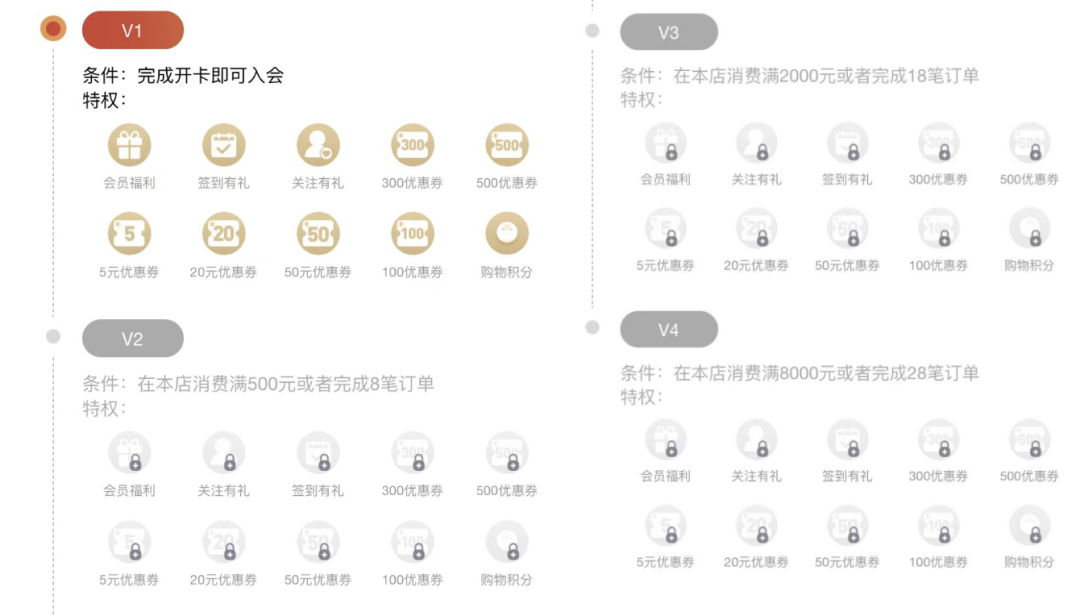 京東和天貓會員體系較為相似,這里以京東會員體系為例。會員等級總共分為4級,不同等級享有不同的權(quán)益,具體如下: