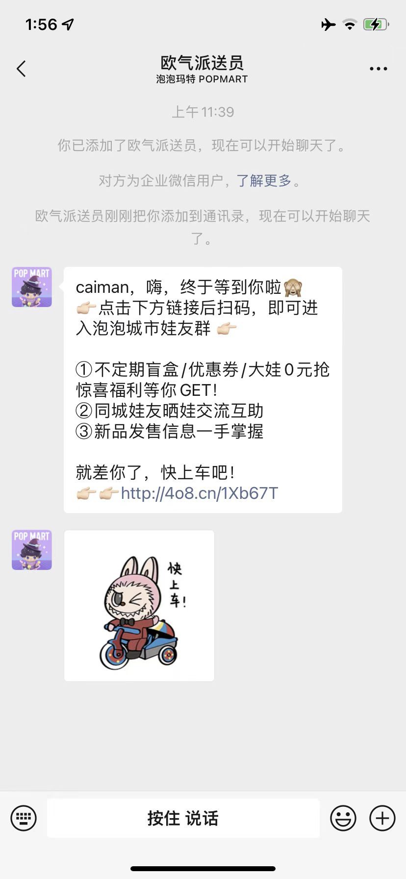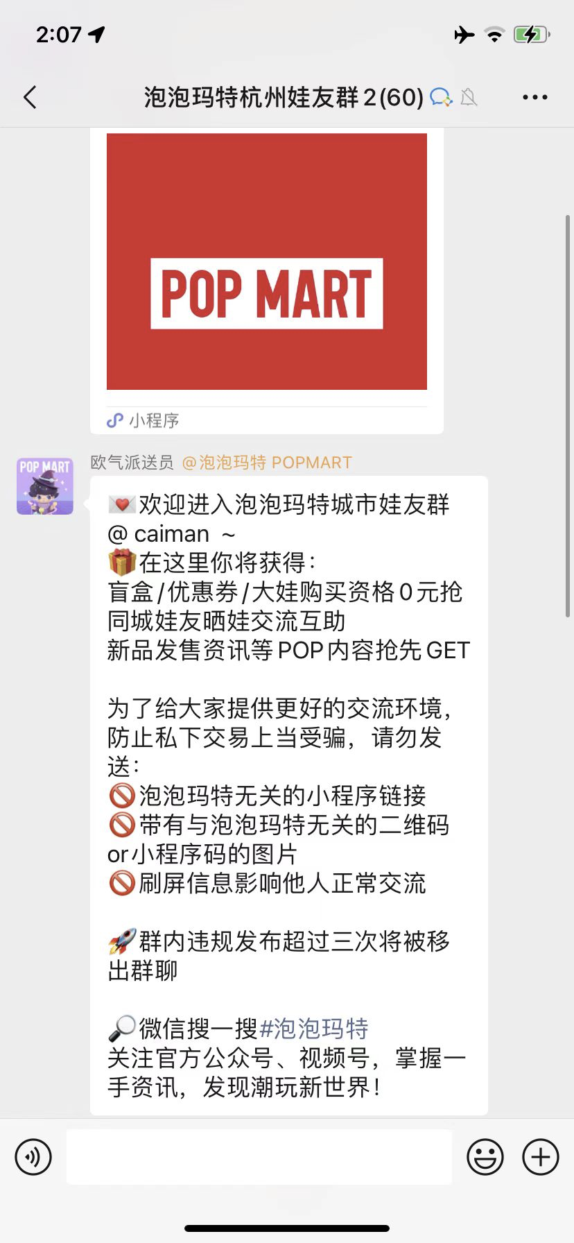 據(jù)不完全統(tǒng)計,泡泡瑪特在微信上有近3萬個社群。90%的社群為玩家自發(fā)建立,剩下的10%社群有一部分門店店員維系客戶所建,還有一部分是官方社群運(yùn)營專員在維護(hù)。