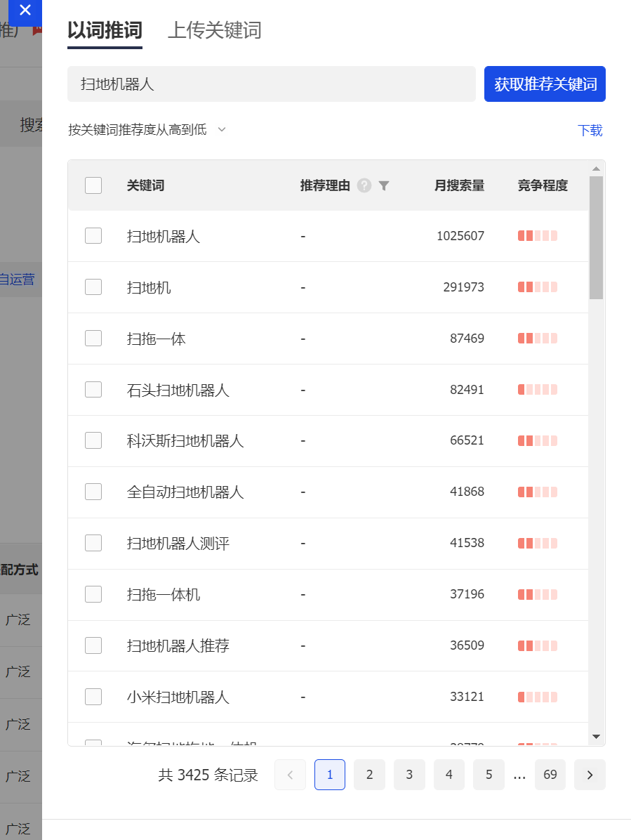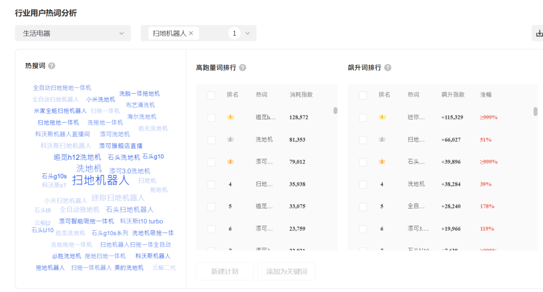 比品牌詞再粗放一些的,是直接競品品牌詞。比如客戶投放某款掃地機器人的時候,那么直接競品就包括了,市面上所有做掃地機器人的相關(guān)品牌名稱以及他們的產(chǎn)品名稱。由于產(chǎn)品趨同,觸達的用戶畫像也基本一致,所以投這類詞也能觸達比較精準的流量。