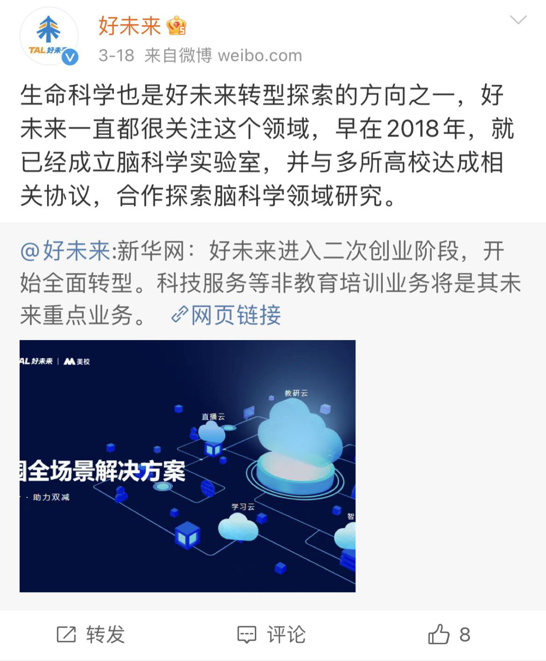再比如,新東方還于 3 月 30 日投資了西藏布局未來(lái)科技有限公司,該公司經(jīng)營(yíng)范圍包括:電子產(chǎn)品銷(xiāo)售;網(wǎng)絡(luò)文化經(jīng)營(yíng);廣播電視節(jié)目制作經(jīng)營(yíng);互聯(lián)網(wǎng)信息服務(wù)等。總的來(lái)看,新東方既想要進(jìn)軍新興市場(chǎng),吃一口“電商直播”的紅利,又想要守住已有的教育版圖,轉(zhuǎn)變教育方向和目標(biāo)用戶(hù),甚至還進(jìn)行了關(guān)于科技領(lǐng)域的長(zhǎng)遠(yuǎn)布局。與新東方「廣拓市場(chǎng)、多領(lǐng)域嘗試」采用的策略不同,好未來(lái)則選擇嚴(yán)守在“教育陣營(yíng)”。好未來(lái)董事長(zhǎng)張邦鑫曾在內(nèi)部信中表明,未來(lái)發(fā)展重心圍繞「素質(zhì)教育」、To B 以及海外業(yè)務(wù)開(kāi)展。運(yùn)營(yíng)社發(fā)現(xiàn),好未來(lái)的轉(zhuǎn)型業(yè)務(wù)主要可以分為兩個(gè)方向。一方面,好未來(lái)在 To C 業(yè)務(wù)上與「學(xué)科培訓(xùn)」徹底劃清界限,轉(zhuǎn)向面向 3-12 歲兒童的「素質(zhì)教育」,開(kāi)設(shè)了科學(xué)、人文、編程等方面的課程。好未來(lái)旗下的學(xué)而思培優(yōu)、學(xué)而思網(wǎng)校都將全面轉(zhuǎn)型素質(zhì)教育,旗下少兒英語(yǔ)品牌“勵(lì)步英語(yǔ)”也已完成品牌升級(jí),更名為“勵(lì)步”,主推戲劇、口才、美育、益智等素質(zhì)教育產(chǎn)品。另一方面,在 To B 業(yè)務(wù)上,好未來(lái)也為政府和學(xué)校提供科技服務(wù)。在 2022 開(kāi)年大會(huì)上,好未來(lái)正式宣布自己進(jìn)入二次創(chuàng)業(yè)階段,開(kāi)始全面轉(zhuǎn)型。官方表示,科技服務(wù)等「非教育培訓(xùn)業(yè)務(wù)」將是其未來(lái)重點(diǎn)業(yè)務(wù)。簡(jiǎn)單來(lái)說(shuō),好未來(lái)想要從一家純教育公司,轉(zhuǎn)變?yōu)椤缚萍冀逃构?,比方說(shuō)為學(xué)校提供數(shù)字化的教學(xué)方案,幫助搭建“云課堂”(教師線(xiàn)上直播授課)等產(chǎn)品。就在去年 12 月 21 日,好未來(lái)還宣布推出全新品牌“美校”,為學(xué)校的數(shù)字化教學(xué)提供線(xiàn)上產(chǎn)品與定制功能。“美?!钡暮诵臉I(yè)務(wù)包括:一直播云,提供適用各種場(chǎng)景、各類(lèi)班型的直播服務(wù)平臺(tái);二是教研云,為教師們提供查題組卷、智能講義、制作課件等功能,助力快捷備出好課程;三是智學(xué)云,開(kāi)放覆蓋“備、教、練、考、評(píng)、管”各個(gè)教學(xué)環(huán)節(jié)的 170 余項(xiàng) AI 能力和定制化AI 解決方案,實(shí)現(xiàn)智能評(píng)價(jià),提供個(gè)性化提升方案。