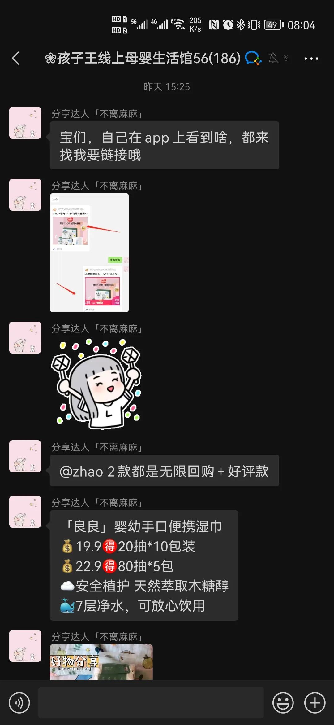 這部分在社群的日常運營動作中可以看出,社群只是做與淘寶客模式相似的產(chǎn)品推送及優(yōu)惠告知,就會有用戶在群內(nèi)咨詢產(chǎn)品并尋求推薦。