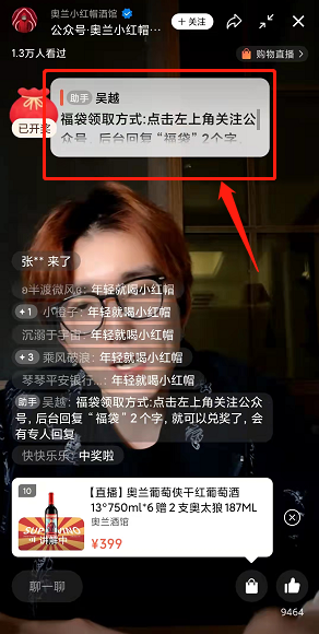部分主播也會(huì)在公屏上顯示福袋的參與方法,以醒目的方式吸引用戶參與。