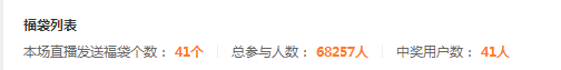 從【福袋列表】可以了解該場直播設(shè)置了41個(gè)福袋,預(yù)估參與人數(shù)超6.8w,極大提高用戶在直播間的停留時(shí)長。