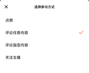 在直播中,主播可以不斷重復(fù)獎(jiǎng)品名稱及參與方式,比如“還沒參與抽獎(jiǎng)的家人們,記得右下角為主播點(diǎn)個(gè)贊,就可以參與福袋抽獎(jiǎng)了”“寶寶們,來,評論刷起來,右上角領(lǐng)福袋”“新進(jìn)來直播間的寶寶們,記得關(guān)注直播,右上角點(diǎn)擊領(lǐng)取福袋哦”等等。目前,視頻號福袋參與條件有點(diǎn)贊、評論任意內(nèi)容、評論指定內(nèi)容以及關(guān)注主播,一場直播可以有多種參與條件。