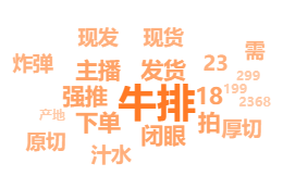 直播福袋的固定放送,培養(yǎng)用戶定時(shí)觀看直播抽取福利的習(xí)慣,也在一定程度上活躍直播間氣氛,比如某場直播參與條件是參與聊天并發(fā)出“牛排活動(dòng)倒計(jì)時(shí)開啟!”可抽獎(jiǎng),在【彈幕詞云】也可以看到“牛排”一詞占比較高,可見用戶參與福袋的積極性。
