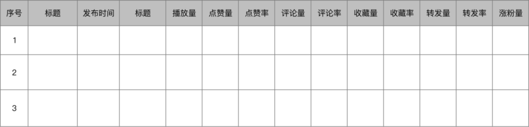 經(jīng)過以上幾個維度,基本上一個類型的賬號,我們可以篩選到3~5個賬號進行重點分析。對這些賬號內(nèi)容進行進一步的拆解和分析,優(yōu)先選擇里面的熱門內(nèi)容,記錄在表格中,主要拆解以下幾個維度: