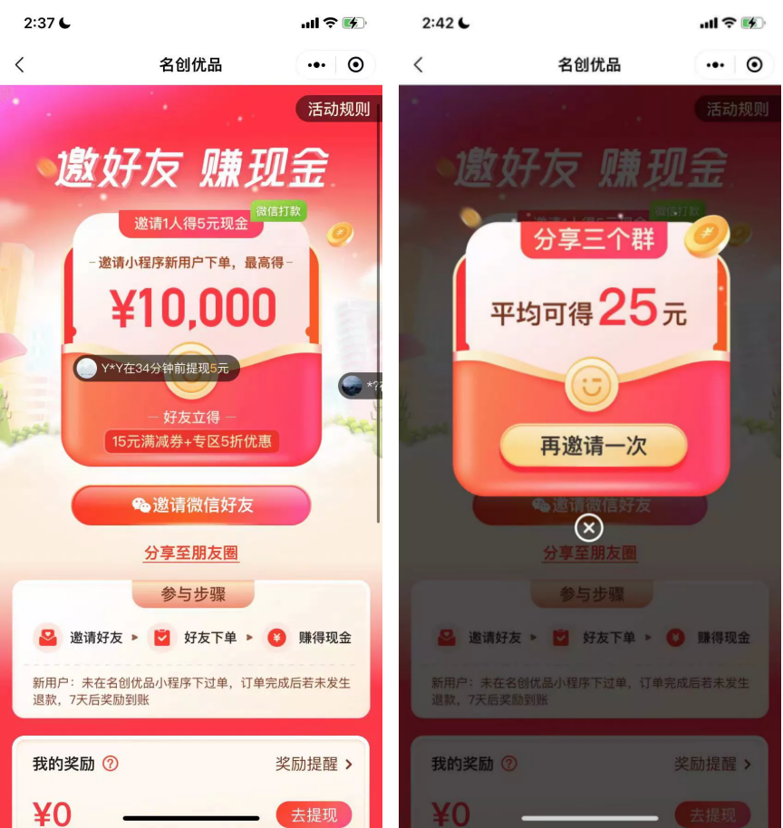 2)邀新好友得現(xiàn)金