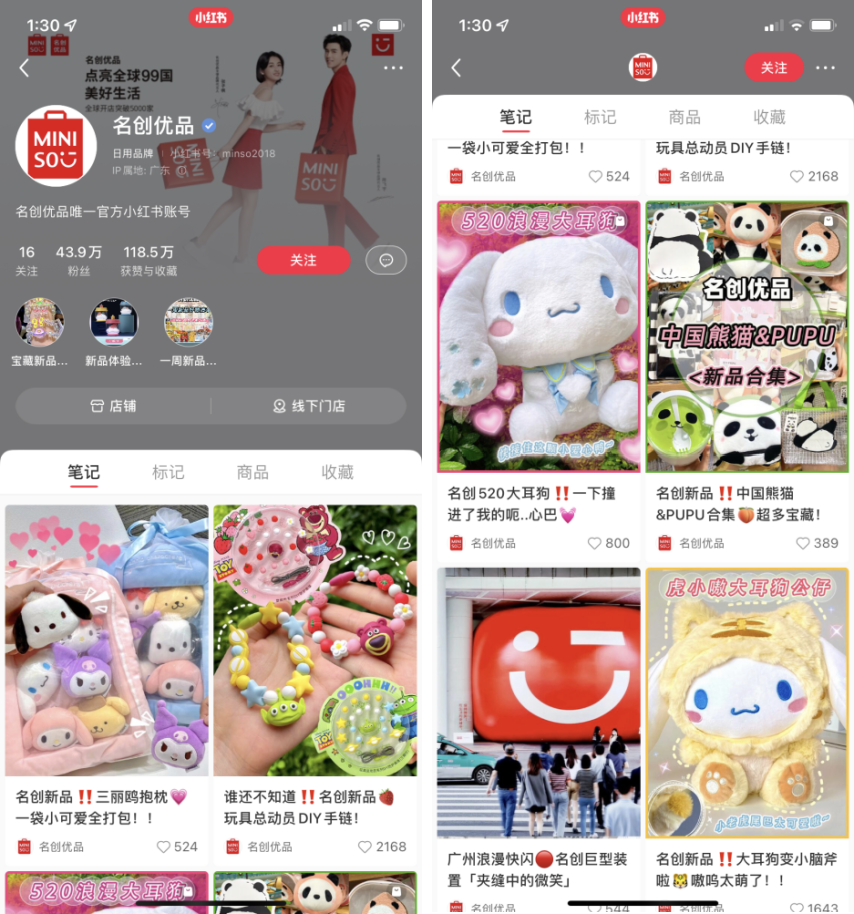 小紅書:目前粉絲超過43.9萬,主要內容以產(chǎn)品種草、活動介紹為主。